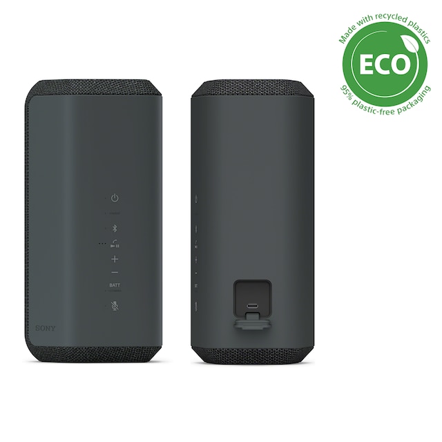Bygd med tanke på bærekraft – Sony-produktene er ikke bare designet for å være stilige og ha høy kvalitet, men også for å ha minimal innvirkning på miljøet. SRS-XE300 bruker resirkulert plast i de innvendige komponentene, i tillegg til at det ikke brukes mer enn 5 % plastmaterialer i den enkelte emballasjen.