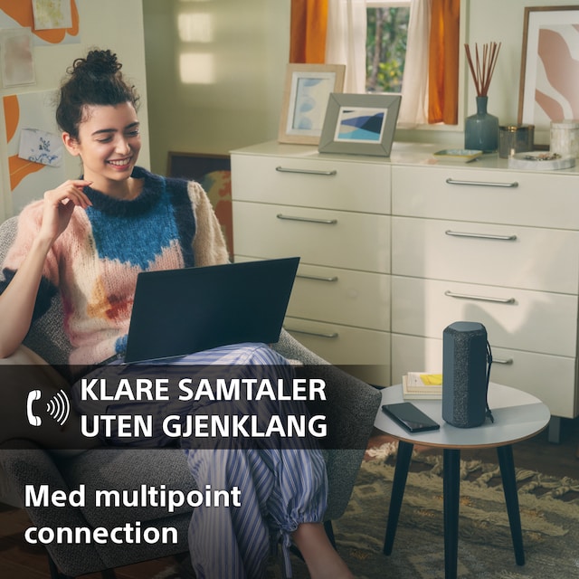 Bruk den trådløse SRS-XE200-høyttaleren for samtaler med venner eller kolleger uten avbrytelser og frustrasjoner.