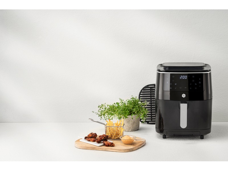 Når den varme luften sirkulerer raskt, skapes en effektiv tilberedningseffekt som gjør at maten smaker frityrstekt uten bruk av olje. Resultatet er en perfekt sprø overflate og en mør og saftig innside. Grønnsaker og halloumi kan gjerne tilberedes på denne måten. For å forenkle den daglige bruken finnes det syv forhåndsinnstilte programmer for tilberedning av sprø pommes frites, nuggets, kylling, pizza, kjøtt, fisk og dessert.