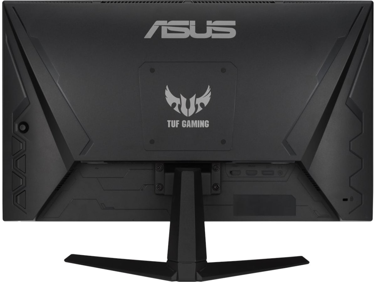 TUF Gaming VG249Q1A har en stealth fighter-inspirert design som gir den et dynamisk og futuristisk utseende. Bakpanelet har vingelignende elementer som gir den en følelse av fart. Et slankt, minimalistisk stativ sørger for stabilitet og et anstrøk av eleganse.