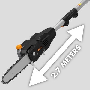 Redskapet har en max rekkevidde på 2.7 meter. Skaftet er 3 delt slik at en bruker forskjellig lengde avhengig av arbeidsoppgavene. Kjedet er an typen Oregon 25.4 cm (10”).  Bladet har automatisk olje smøring og en kjedefart på 16 m/s. Kuttekapasiteten er avhengig av batteriets størrelse, men med 2.5 Ah batteri så er det mulig og kutte over > 150 stk diameter 8 cm grener Det er ikke nødvendig med ekstra verktøy for og justere på sagbladet.