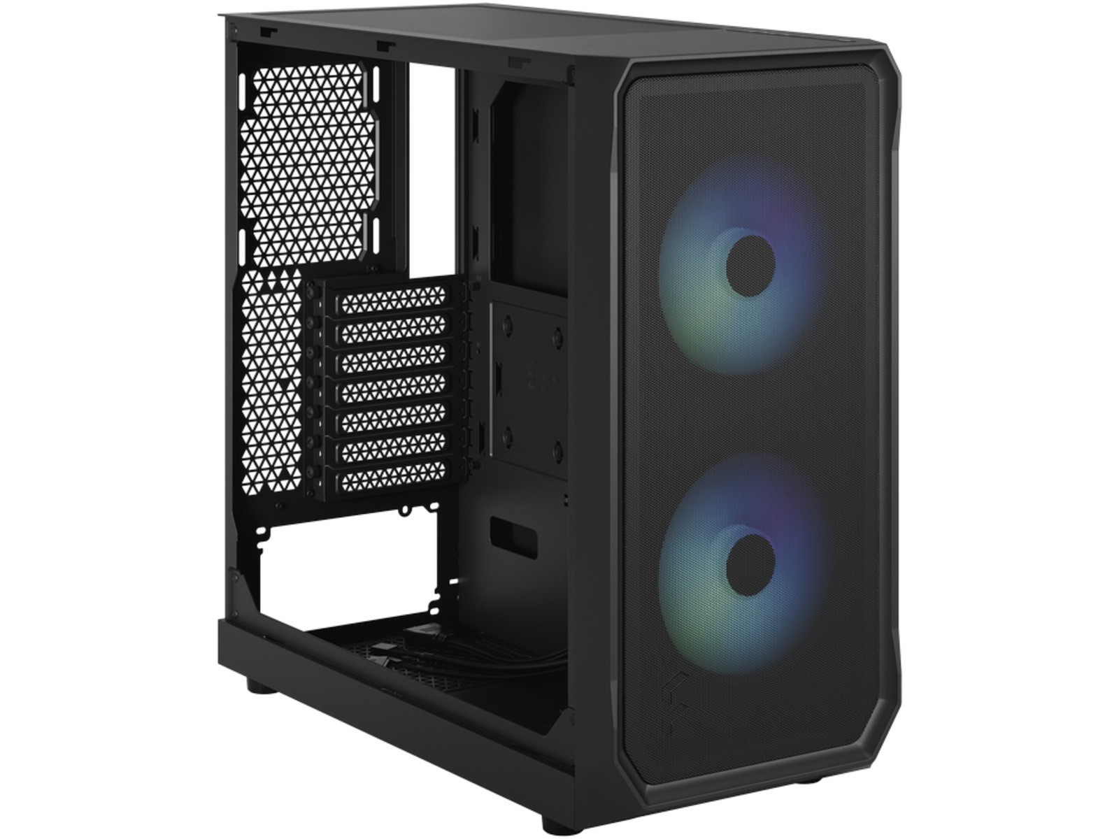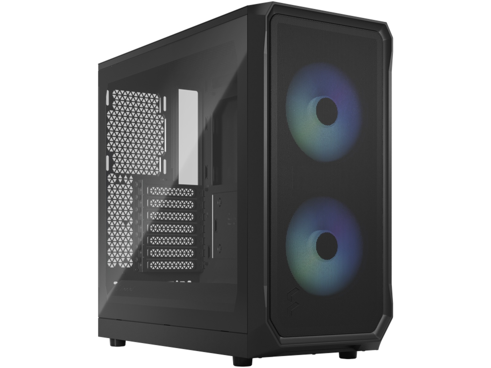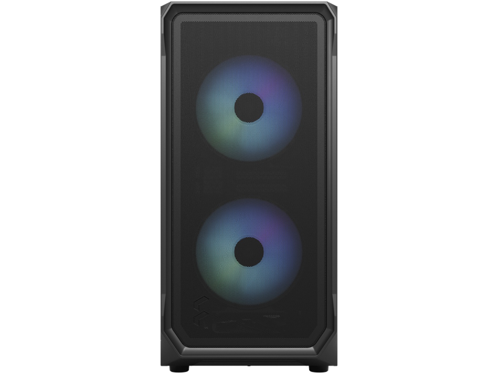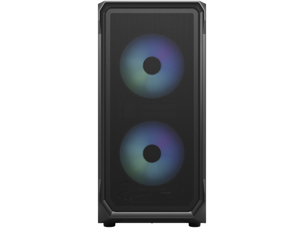 • I/O-panelet på fronten har to 3.0 USB 5 Gb/s-porter, mikrofon- og hodetelefonkontakter, en nyutviklet adresserbar RGB-kontroller og RGB LED-lys (Focus 2 RGB)