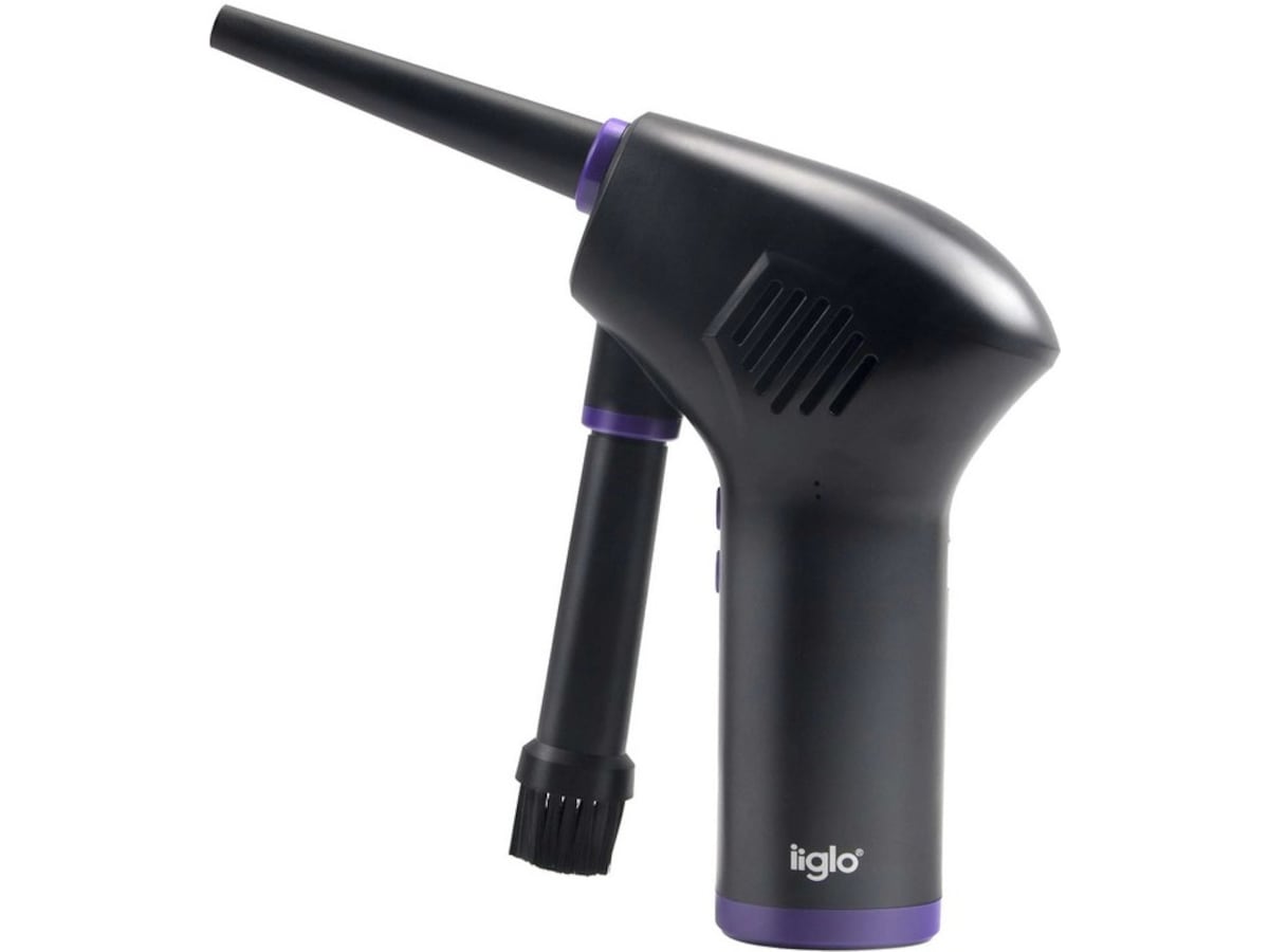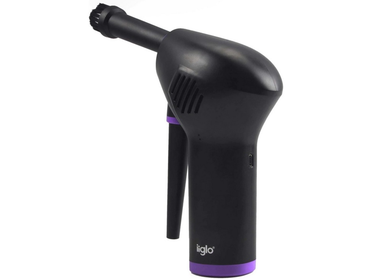 iiglo oppladbar støvblåser brukes til å rengjøre datamaskindeler, tastaturer, laptoper, kameraer og annen elektronikk som det er vanskelig å tørke støv av. Støvblåseren har en rotasjonshastighet på opptil 36 000 o/min. og blåser kontinuerlig ut høytrykksluft for å gjøre det lettere å fjerne støv fra områder som er vanskelige å nå.