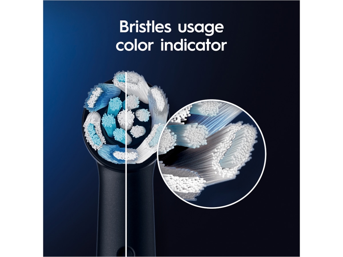 - iO-teknologi kombinerer Oral-Bs ikoniske runde børstehoder med de skånsomme mikrovibrasjonene til iO-tannbørsten for Oral-Bs beste rengjøringsytelse