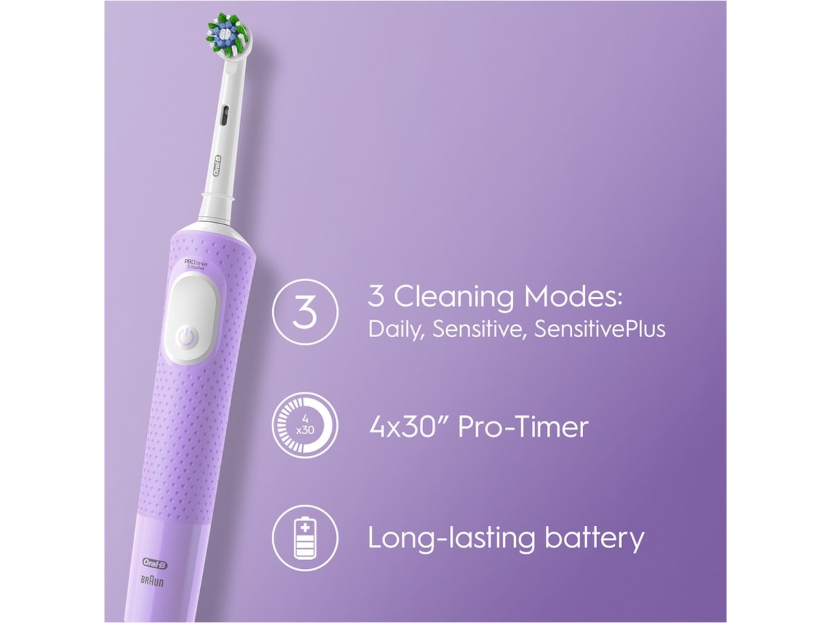 Tannbørsten har 3 pusseinnstillinger: daglig rengjøring, sensitiv og sensitiv pluss-innstilling for en utrolig skånsom opplevelse. En timer i håndtaket hjelper deg å pusse i 2 minutter slik tannlegen anbefaler. Og det beste av alt er at den leveres av Oral-B – varemerket som flest tannleger bruker verden over.