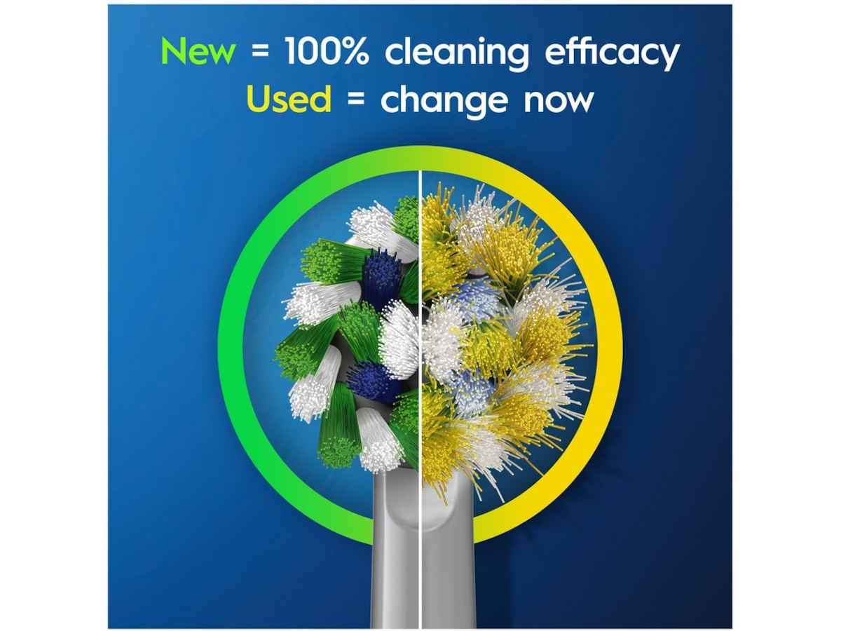 - Oral-Bs børstehode skifter farge fra grønt til gult for å indikere når det er på tide å bytte, for å opprettholde en 100 % rengjøringseffekt