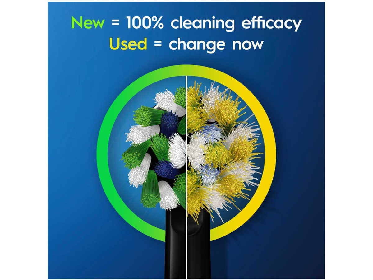 - Oral-Bs børstehode skifter farge fra grønt til gult for å indikere når det er på tide å bytte, for å opprettholde en 100 % rengjøringseffekt