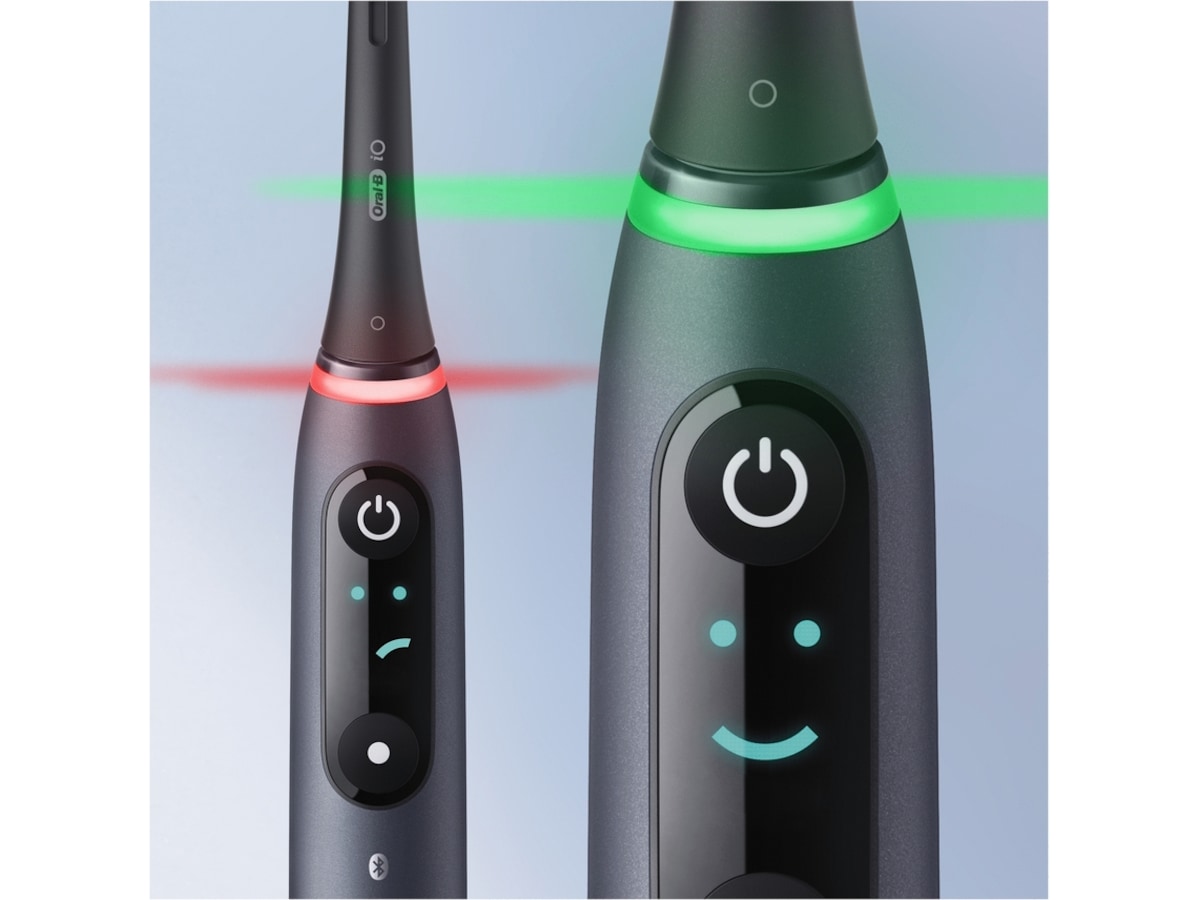 Den smarte trykkontrollen varsler deg med et rødt lys hvis du pusser for hardt og lyser grønt ved riktig trykk.