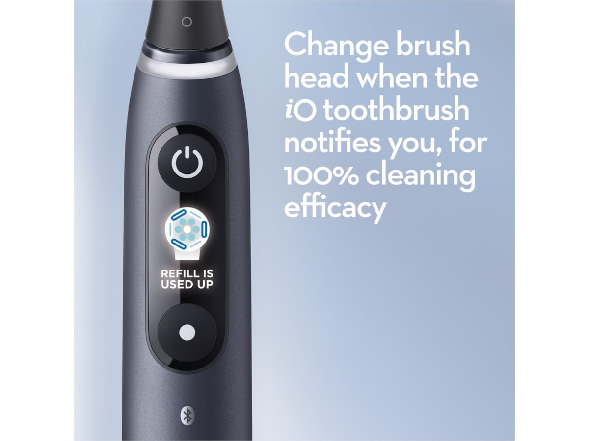 iO kombinerer Oral-Bs unike runde børstehode med den skånsomme, rengjørende effekten fra mikrovibrerende børstestrå.