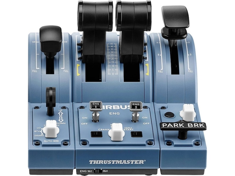 Dette tilbehøret til passasjerfly fra Airbus inkluderer alle de funksjonene som kreves for å styre alle typer sivile fly – fra business jets til transportfly, og også kunstflyvning. Det har ergonomiske kopier av Airbus-sidespaken og -gasspaken, som ligner dem som finnes i de kjente passasjerflyene Airbus A320/A320neo. TCA Officer Pack Airbus Edition består av produkter som er ikoniske på alle nivåer: Designen til hver enhet gjenspeiler de opprinnelige formene og fargene, med en utrolig autentisk og naturtro følelse på de forskjellige komponentene.