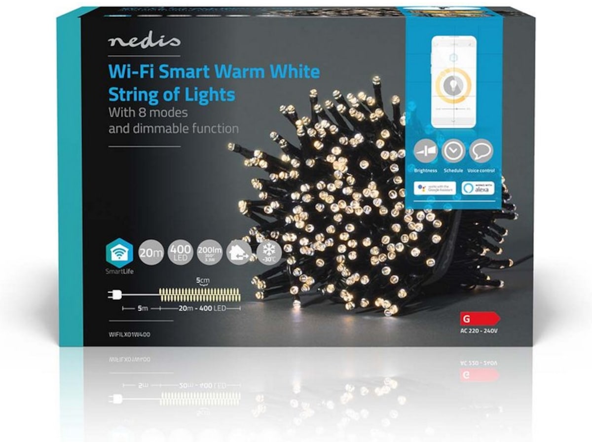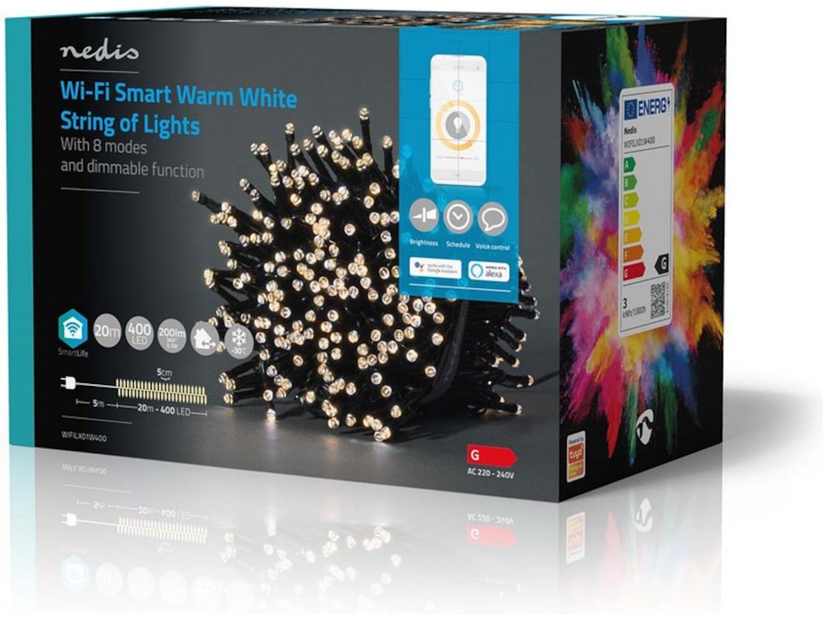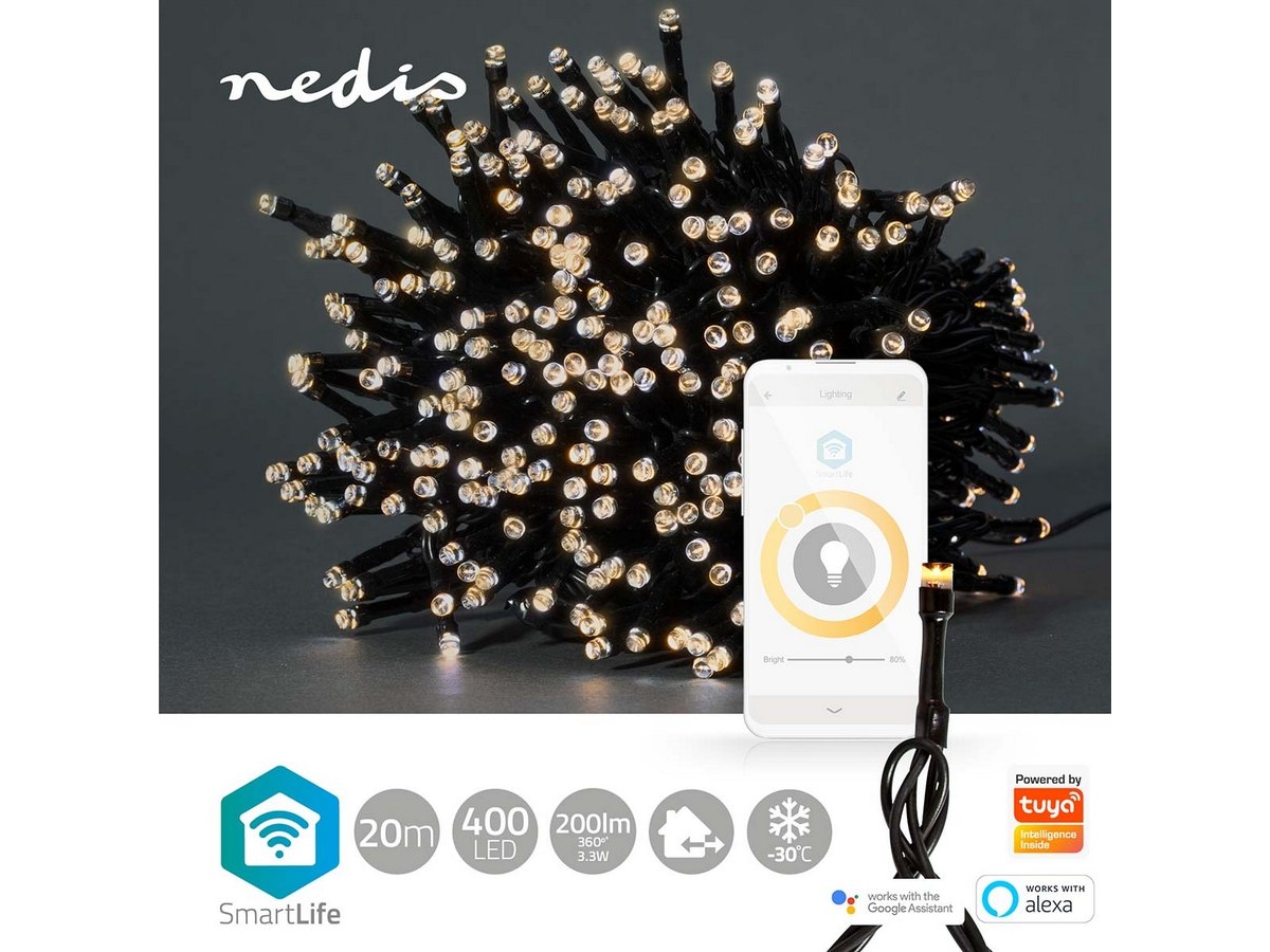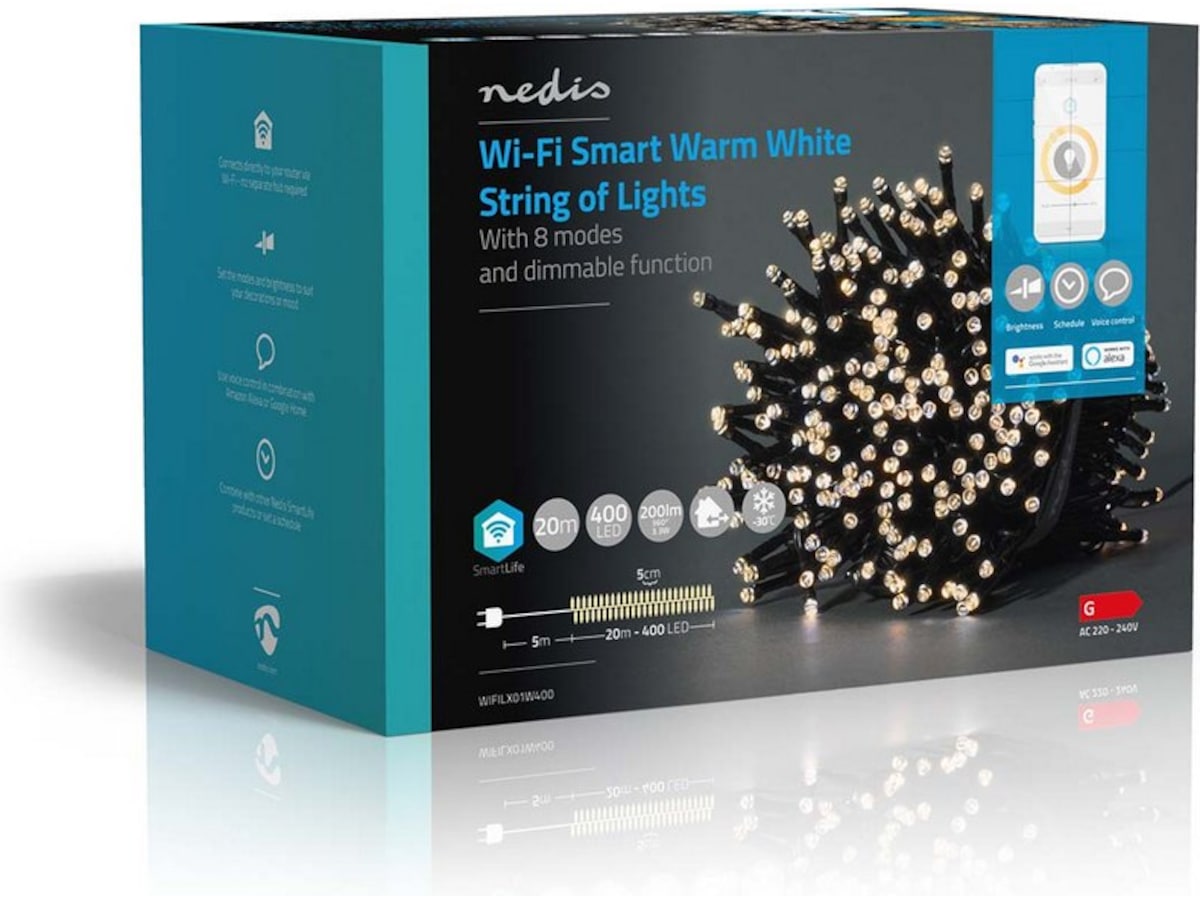Smart Wi-Fi-lyslenke kan installeres uten gateway og kan integreres direkte i det trådløse nettverket. Dette forenkler installeringen og sparer ekstra kostnader. Styr lysene ved hjelp av Nedis® SmartLife-appen, og bruk automatiske innstillinger basert på tidsstyring og solnedgang eller i kombinasjon med andre Nedis® SmartLife-produkter. I kombinasjon med Google Home eller Amazon Alexa kan du til og med bruke talekommandoer til å endre mønsteret på lyslenken.