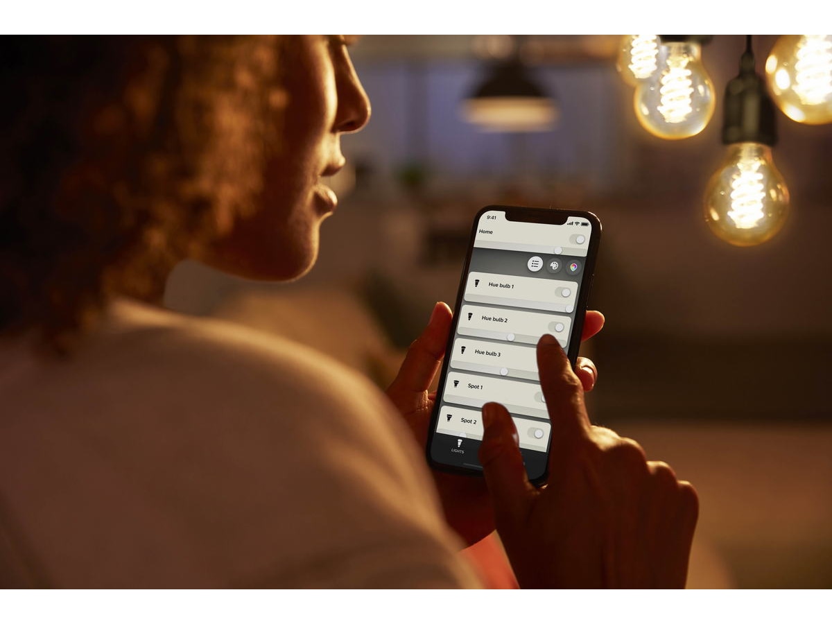 Med Hue Bluetooth-appen kan du styre Hue-smartbelysningen i et enkelt rom i hjemmet.