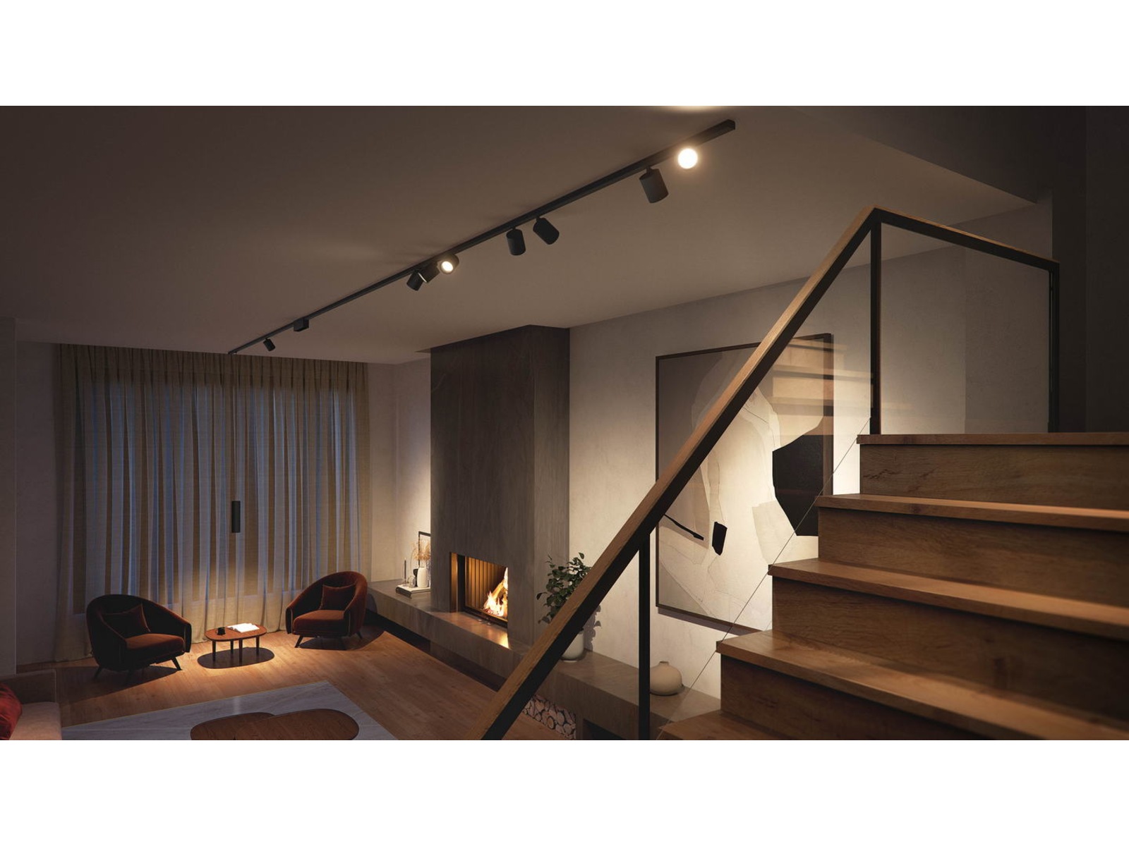 Dette skinnnebelysningssettet i svart for veggen gir deg mulighet for å få det perfekte skinnesystemet for vakker, fargerik stemningsbelysning til veggene i hjemmet ditt. Settet inkluderer to 1 meter skinner, 4 Cylinder spotter og en strømforsyning som er plassert mellom to skinner.