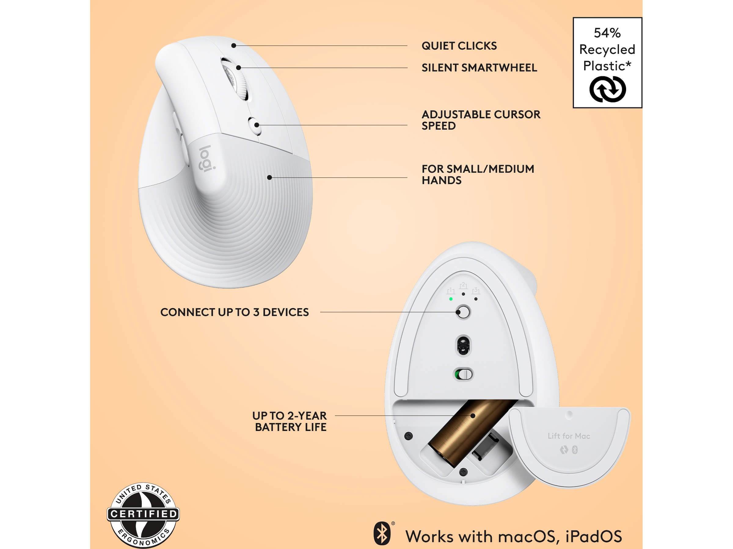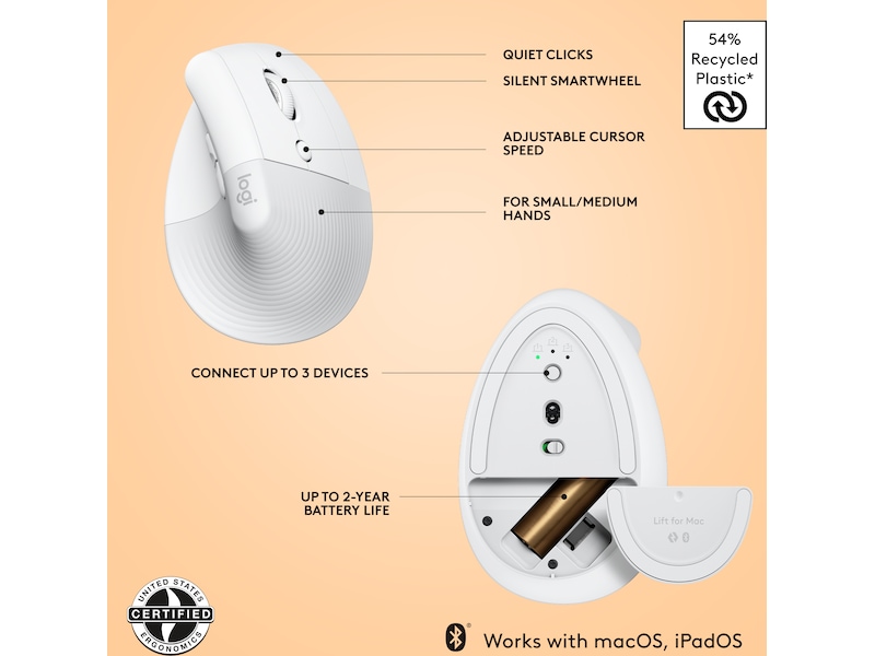 Logitech Lift for Mac Vertikal Trådløs Mus (off-white)