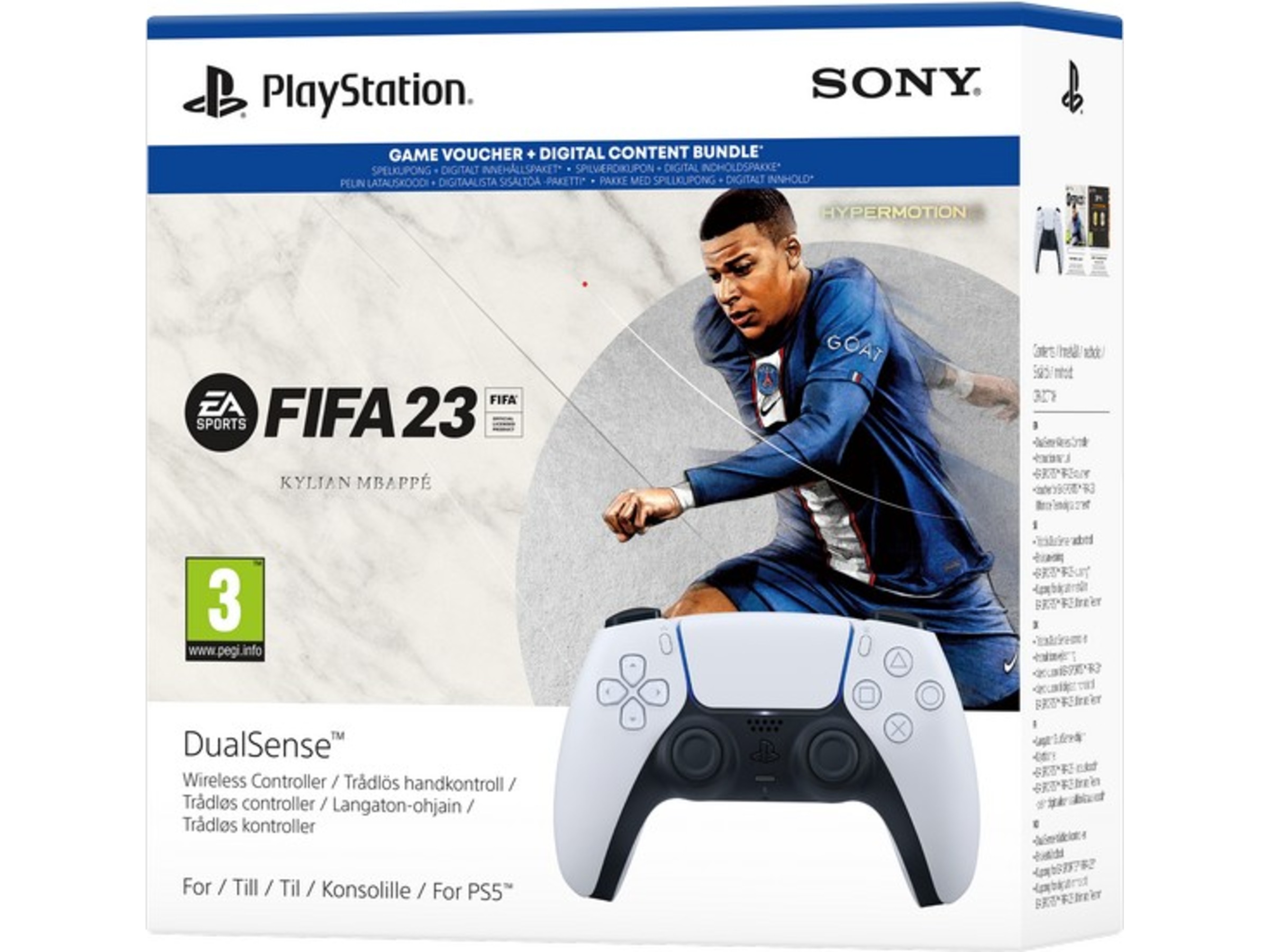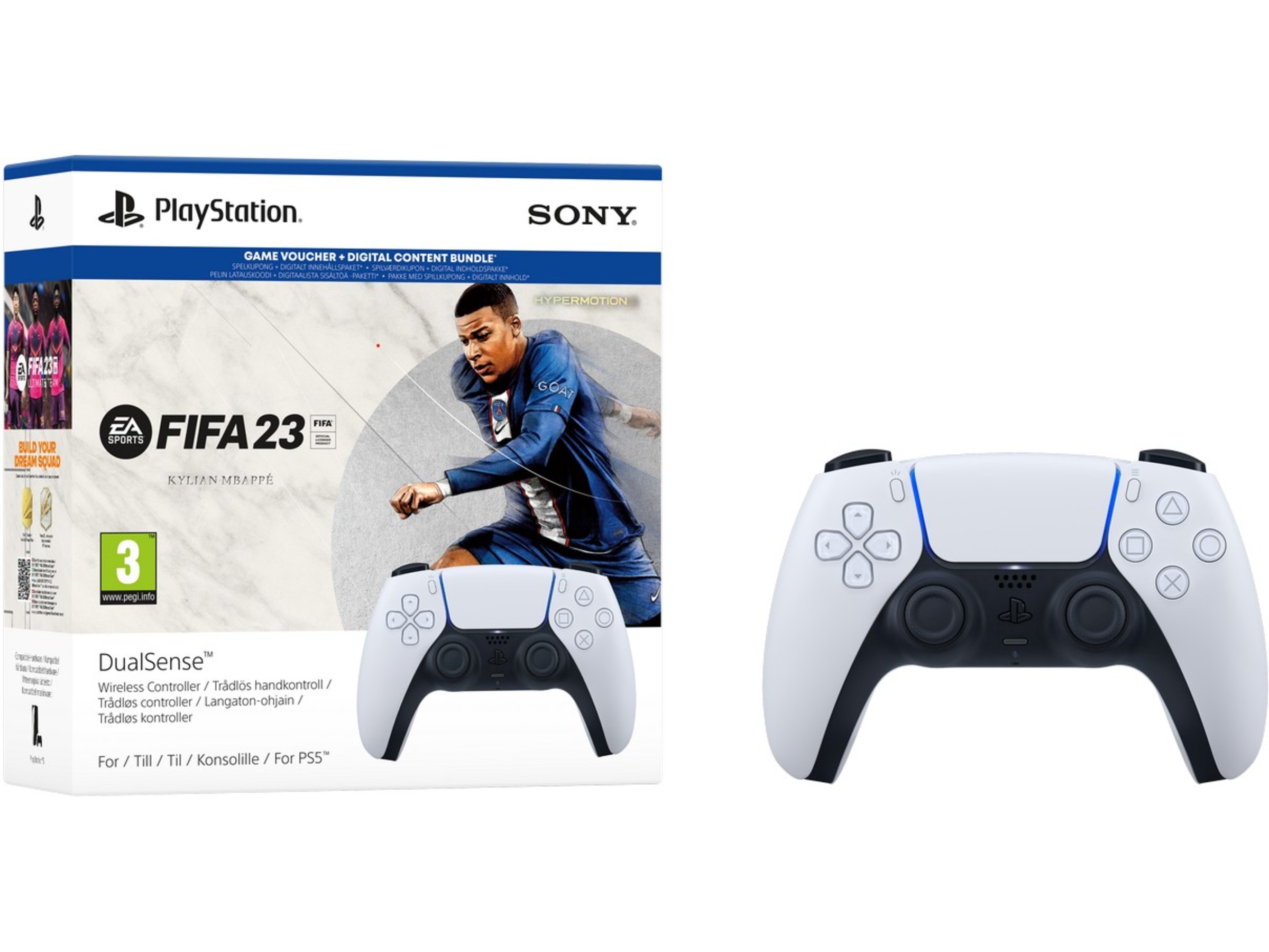 DualSense™ trådløs kontroller + EA SPORTS™ FIFA 23-pakken inkluderer: