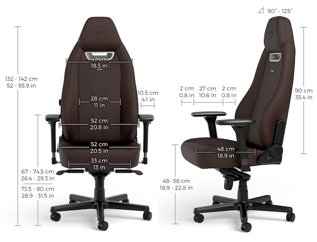 LEGEND-serien er designet til perfeksjon, og kombinerer de beste funksjonene fra noblechairs premiumstoler for å gi entusiastene den sitteopplevelsen de fortjener. Med en større ryggstøtte og innebygd korsryggstøtte tilbyr LEGEND lignende funksjoner som HERO med den sofistikerte designen fra ICON.