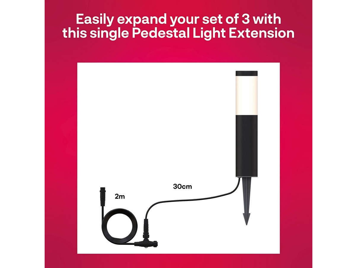 En utvidelsespakke kan bare brukes som et tillegg til et eksisterende sett med Fargede utendørsspotter (OSL 130 C) 3‐pakn. ELLER et sett med Fargede utendørs sokkellys (OPL 130 C) 3‐pakn. Du trenger en kontrollboks og strømforsyning for å installere utendørslysene. Utvidelsespakken inneholder ikke en kontrollboks. Kontrollbokser fås ikke separat.