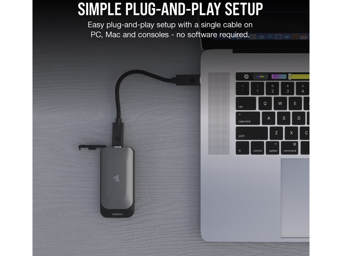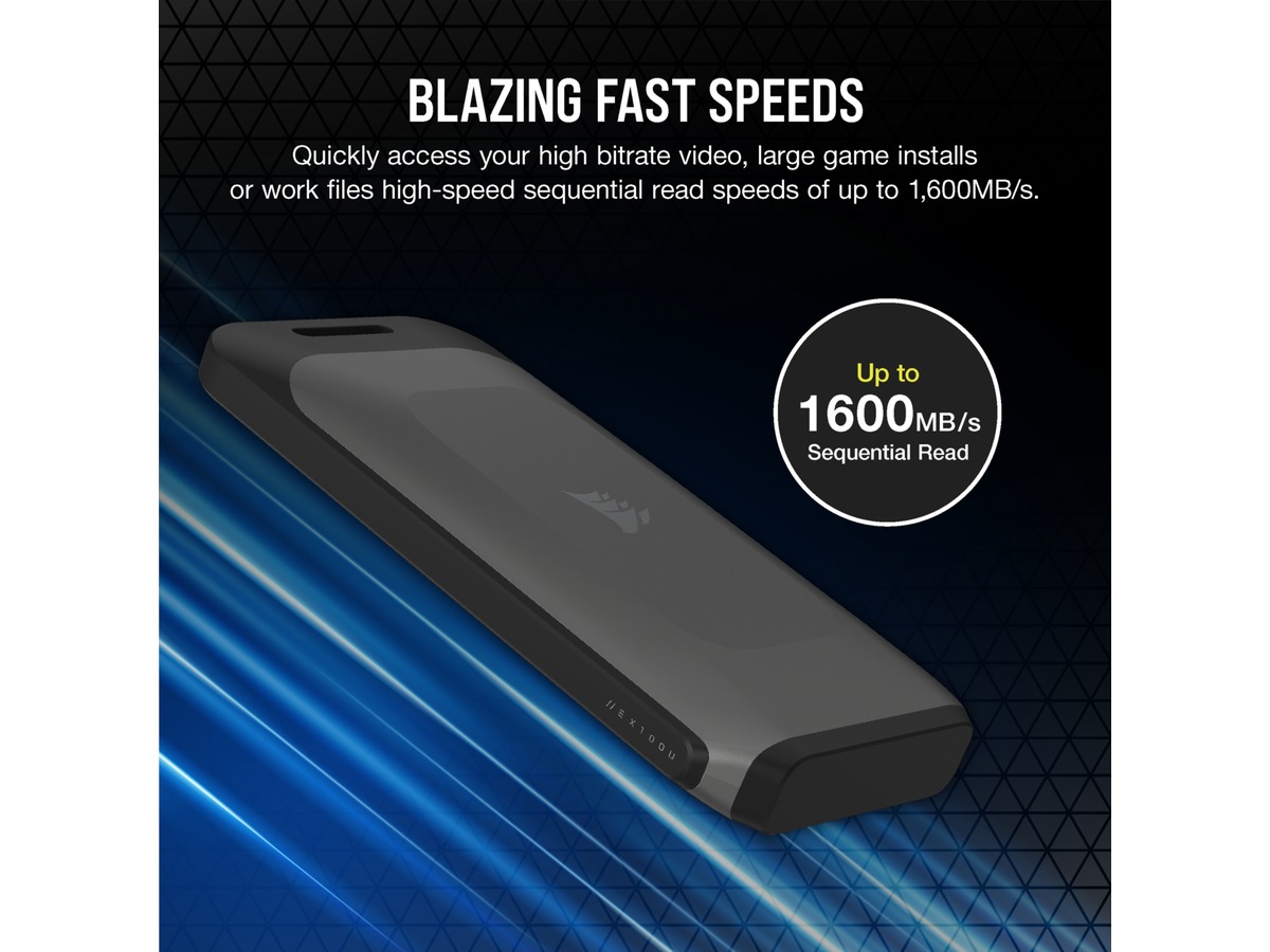 Enten du har utrolig store filer eller mange digitale spill, kommer CORSAIR EX100U i kapasitetsstørrelser på 1 TB, 2 TB eller 4 TB, for rikelig med lagringsplass for dine behov.