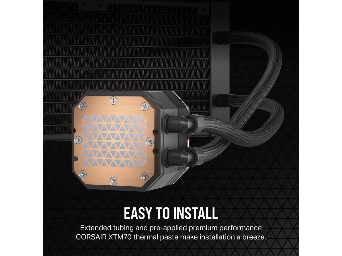 En utvidet rørlengde på 400 mm (H100i, H115i) / 450 mm (H150i, H170i), modulære verktøyfrie monteringsbraketter og ferdig påsmurt kjølepasta XTM70 gir enkel installasjon på de nyeste hovedkortsoklene fra Intel® og AMD®, inkludert LGA 115X , 1200, 1700, 2011 og 2066, pluss AMD Socket AM4, AM5 og sTRX4/sTR4.