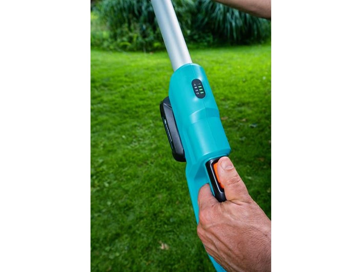 Takket være en LED-indikator på håndtaket, ser du alltid gjeldende ladenivå. Med det 2.5Ah 18V inkluderte batteriet, er kjøretiden opptil 50 minutter eller opptil 200 kutt av grener med 50-millimeter diameter.