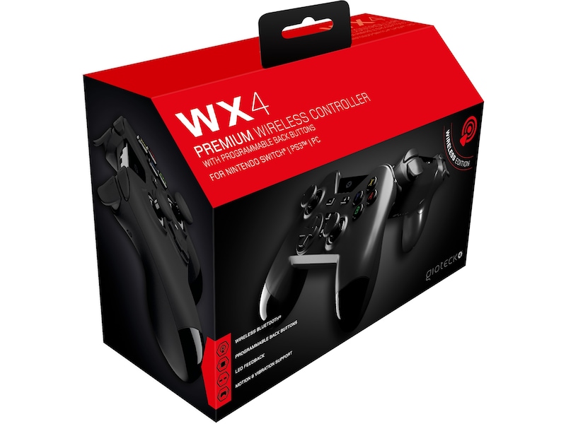 Bli proff, og bytt ut Joy-Con™-kontrollerne med WX-4 – det ultimate innen pro-gaming-kontroll for Switch™. Vår tradisjonelle design lar deg spille komfortabelt i timevis. Bli elite og få fordelen med programmerbare tilbakeknapper, kartlegg på farten til dine preferanser. Med bevegelses- og vibrasjonskompatibilitet leverer WX-4 imponerende, oppslukende spilling.