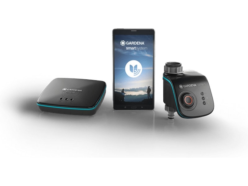 Settet består av GARDENA smart Water Control og GARDENA smart Gateway. GARDENA smart Water Control festes på den vanlige hagekranen og justerer vanntilførselen, mens GARDENA smart Gateway synkroniserer smart systemet via internett. På den måten kan du vanne hagen effektivt, holde plantene friske, og samtidig utnytte hver vanndråpe på best mulig måte.