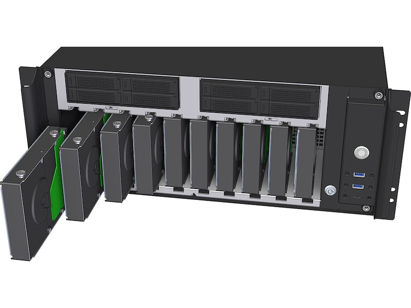 | Ekspansjonsbrønner | 8 (total) / 8 (ledig) x tilgang fra forsiden - PCIe-kort, 10 (total) / 10 (ledig) x tilgang fra forsiden - 3.5", 4 (total) / 4 (ledig) x intern - 2.5" |