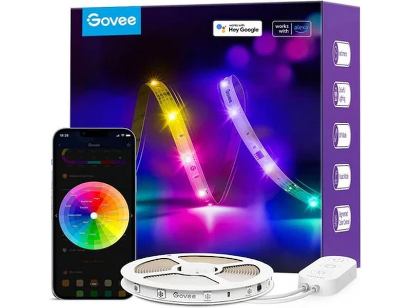 - Smart app-styring: Endre farger, lysstyrke og mer med Govee Home-appen