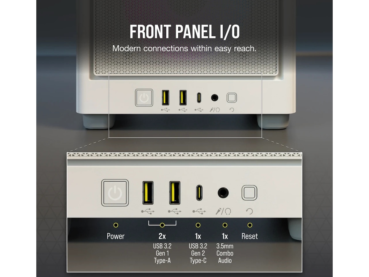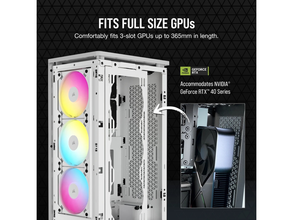 Du trenger ikke å ofre ytelsen med et SFF-kabinett. La GPU-en din i full størrelse puste inn et optimalisert indre som har plass til opptil 8 x 120 mm vifter og luftstrømspaneler i nettingstoff på alle sider.