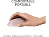 Plastdelene i M240 Silent datamus inkluderer sertifisert etterforbruker gjenvunnet plast (48 % for grafitt og 37 % for off-white og rosa)