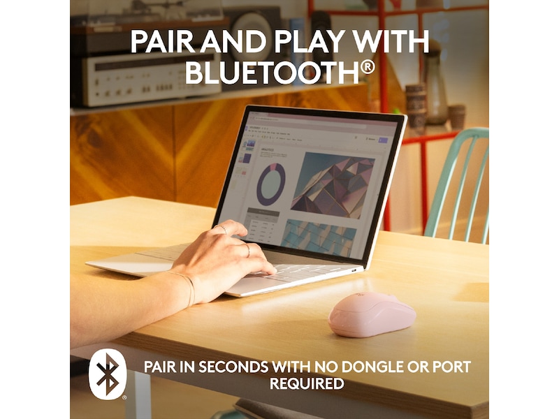 Med rask og enkel trådløs Bluetooth-teknologi kan du koble til denne stillegående, trådløse musen på sekunder — ingen dongel eller port nødvendig