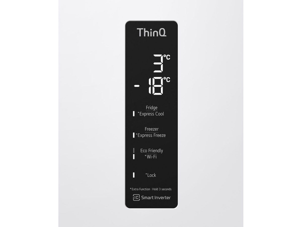 Med en kompatibel smarttelefon og LG ThinQ™ app kan du fjernstyre temperaturinnstilingene slik at ditt kjøleskap er tilpasset for å håndtere all mat for et skikkelig festmåltid.