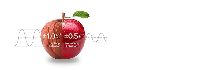 LG Inverter Linear Compressor hjelper til med å bevare utseendet og smaken av ferske produkter lenger gjennom å redusere temperaturvariasjoner (svingninger).
