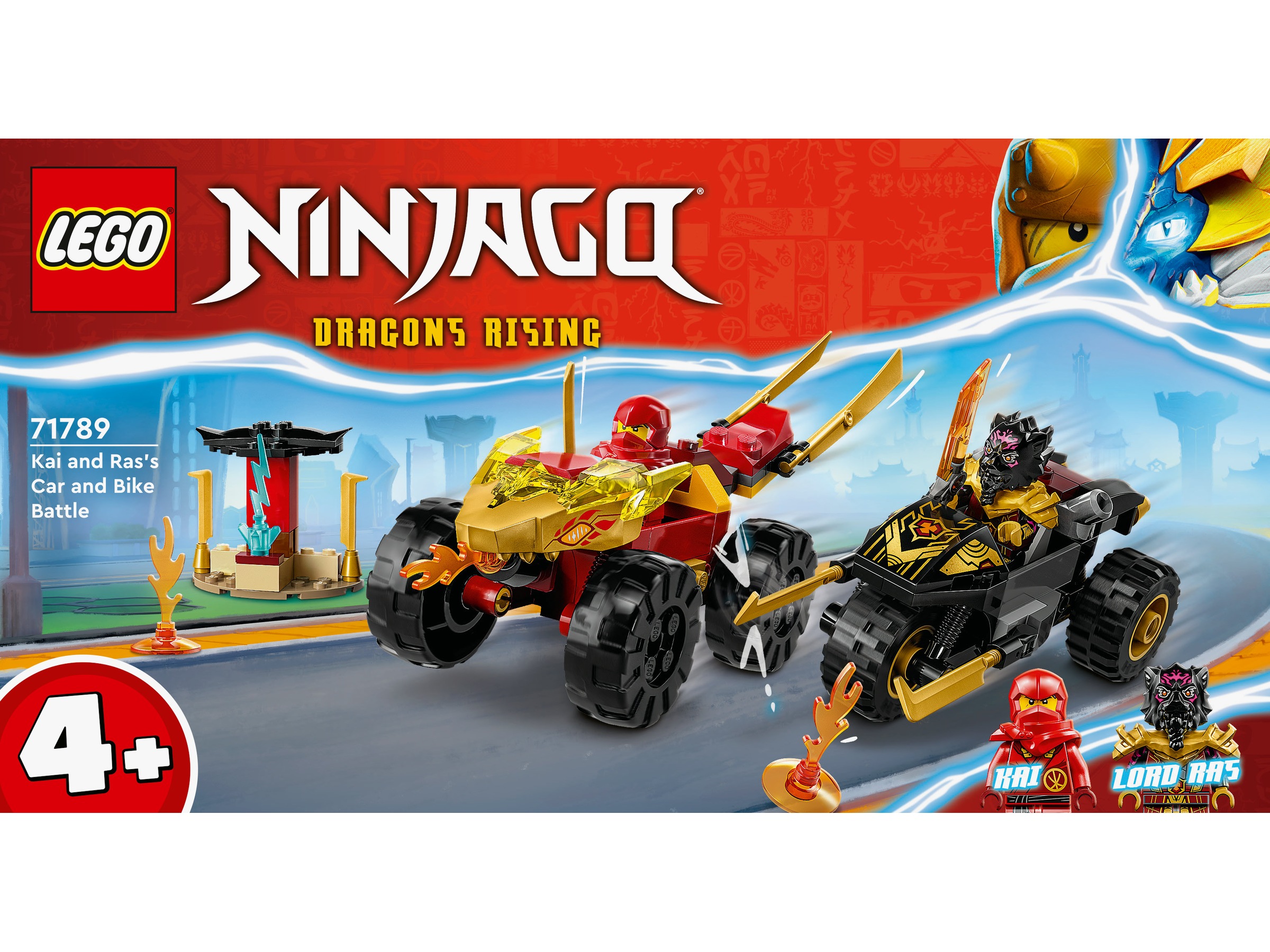 LEGO® NINJAGO® Kai og Ras' bil- og motorsykkeloppgjør 71789