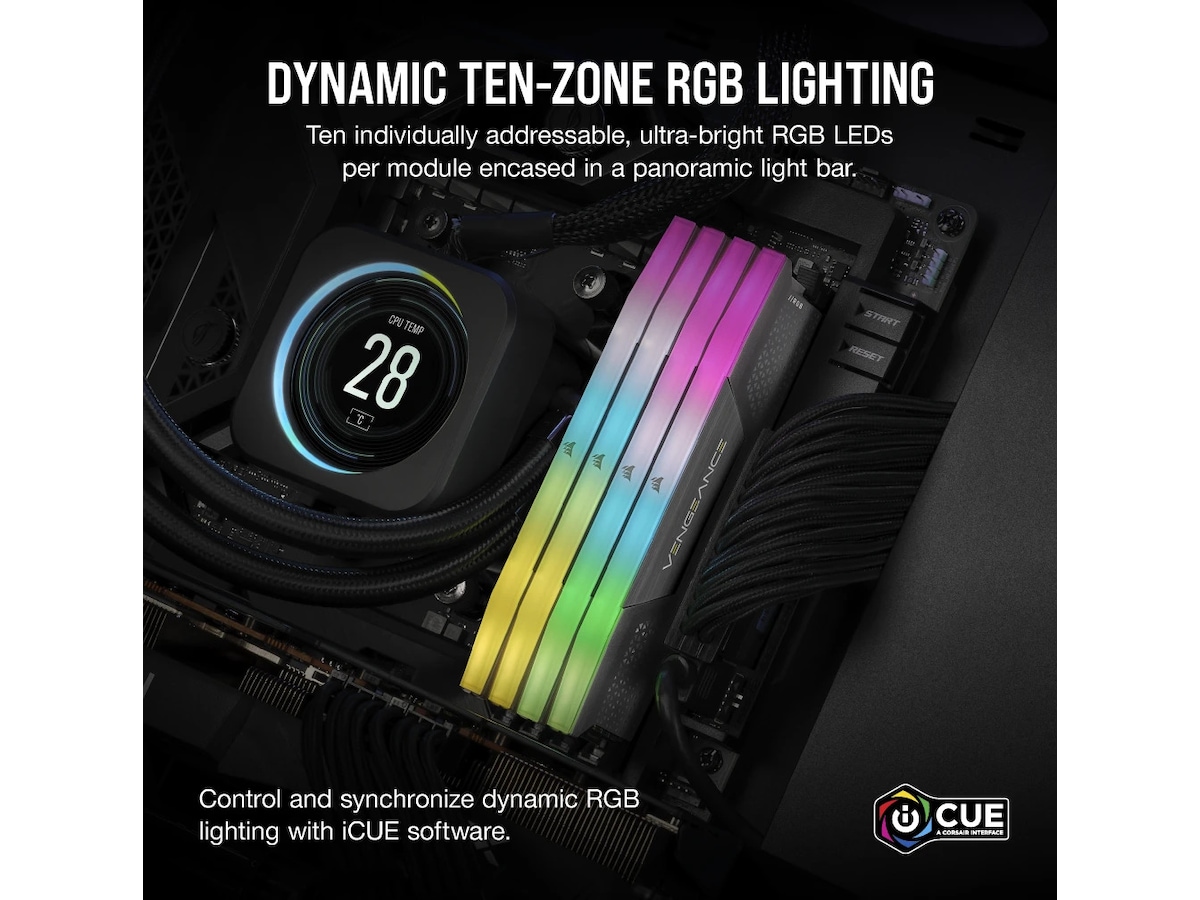 Kraftig CORSAIR iCUE-programvare får liv i anlegget ditt med dynamisk RGB-lysstyring, synkronisert på tvers av alle dine iCUE-kompatible produkter, inkludert minne, vifter, RGB LED-lyslister, tastatur, mus og mer.
