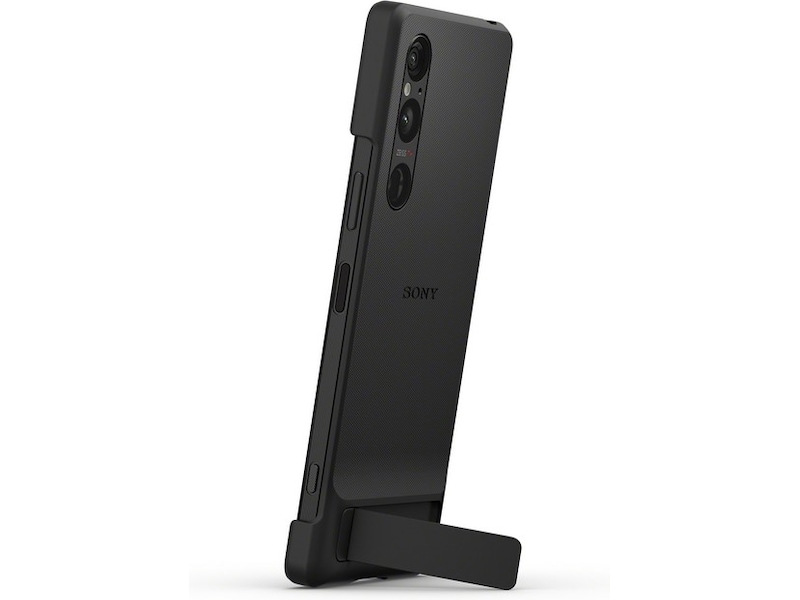 Etuiet er designet for å være komfortabelt i en hvilken som helst situasjon og gir utmerket grep til å bruke kameraet. Et innebygget støtteben gir deg den perfekte vinkelen til å ta selfier, videochat, direktestrømming og videotitting, både horisontalt og vertikalt. I tillegg til å beskytte din Xperia 1 V, matcher det også enhetens taktile utforming.