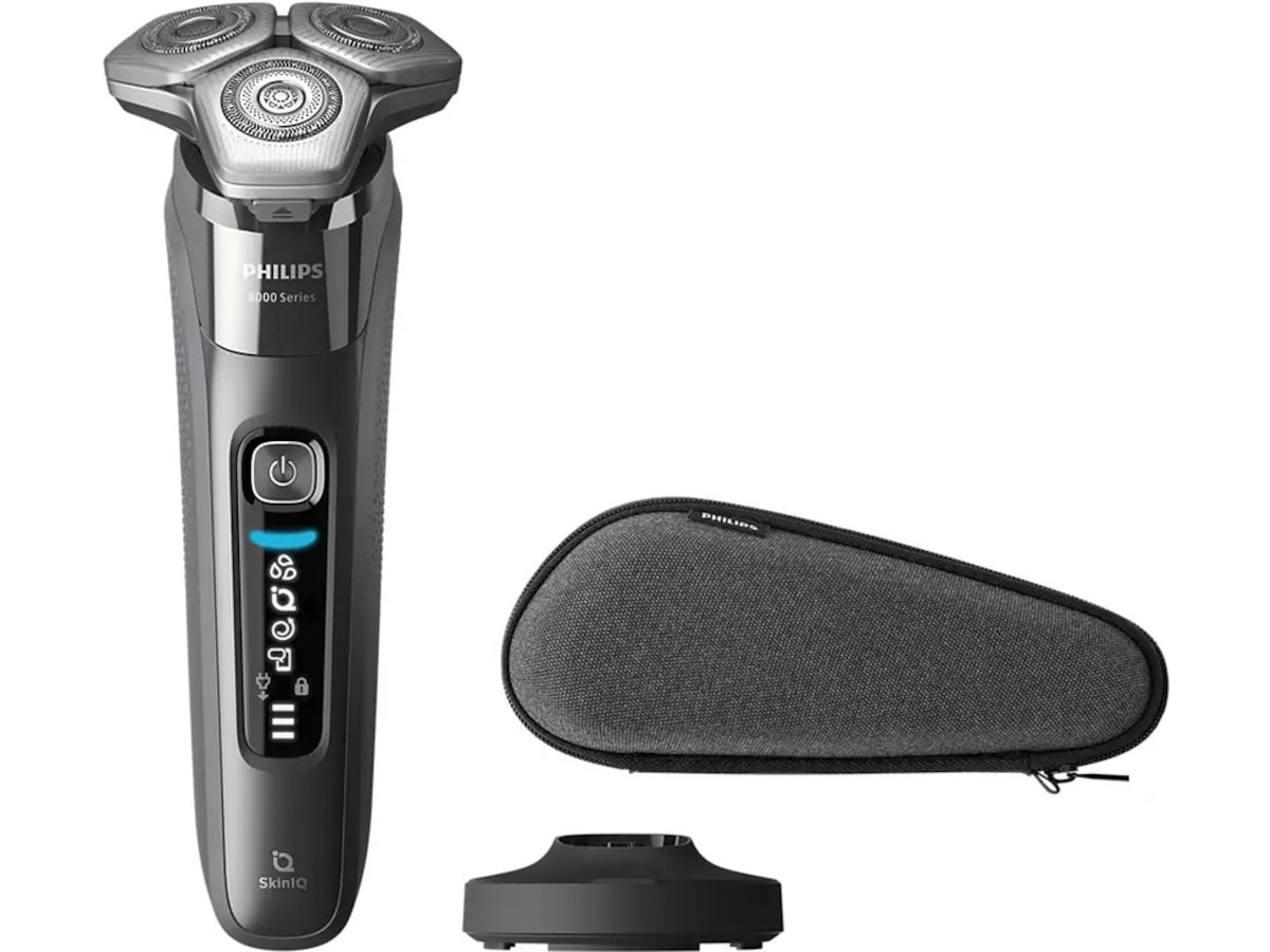 Philips 8000-serien glir lett over huden, samtidig som hvert hår klippes tett – selv på femdagers skjegg. Barbermaskinen er utstyrt med avansert SkinIQ-teknologi, og den tilpasser og veileder seg etter riktig bevegelse for å gi bedre hudbeskyttelse.