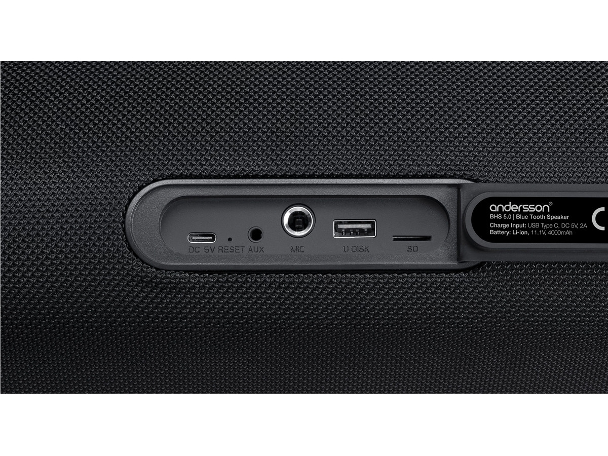 Anderssons Bluetooth-høyttalere er bygget med slitesterke materialer slik at du kan nyte favorittmusikken din uansett miljø. Høyttaleren har IPX7-sertifisering og er vanntett for bruk ved bassenget, på stranden eller til å ta med deg musikken i dusjen. Høyttaleren kan håndtere en vanndybde på en meter i opptil 30 minutter.