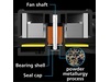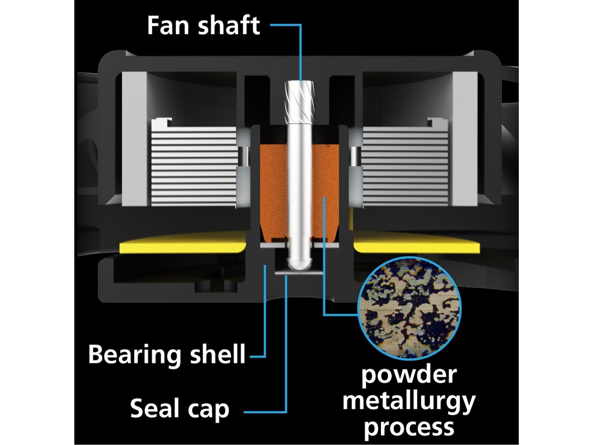 Det nye MHD-lagret har et Hydro Dynamic-lager med forbedret pulvermetallurgiteknologi. MHD Bearing-teknologi utnytter økt oljekapasitet som forbedrer smøringen på lagrene, og gir jevnere rotasjon. Den forbedrede oljefordelingen skaper den ultimate flyten som forlenger viftens levetid og pålitelighet i opptil 40 000 timer og en senkende viftestøy.