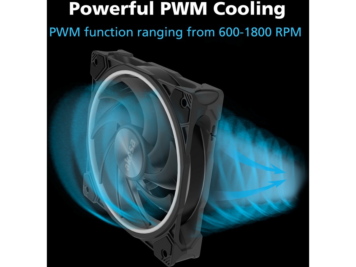 Førsteklasses deksel på 140 mm, kjøleribbe og radiatorvifte med avansert bladteknologi, intelligent PWM-hastighetskontroll og levende aRGB-lysdioder hver for seg. Hovedkortsynkronisering med kompatible vanlige RGB-programvareleverandører.
