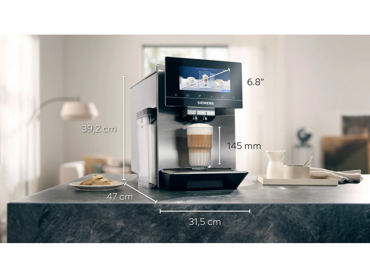 Komfort laget av Siemens. Forvarmet kopp som et tilskudd til din kaffe opplevelse. Takket være den aktive koppvarmeren holder kaffen seg lengre varm og tillater deg å nyte full aroma over lengre tid. Spesielt Espresso laget i forvarmet kopp smaker perfekt.