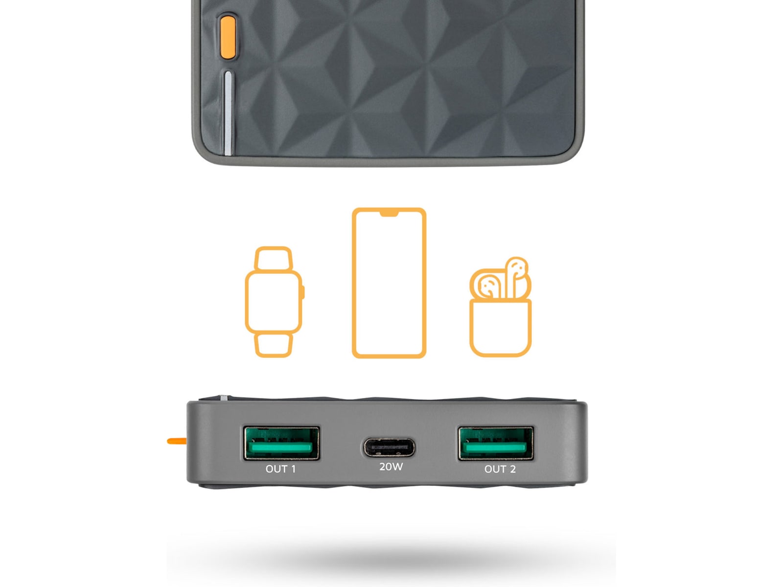 Denne powerbanken har en ikonisk geometrisk design med en matt, myk finish, som er designet for å se og føles flott ut. Resultatet er en Power Bank som skiller seg ut fra mengden, og som det er en sann fryd å bruke hver dag.