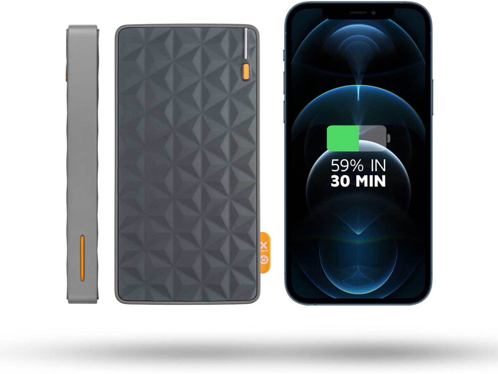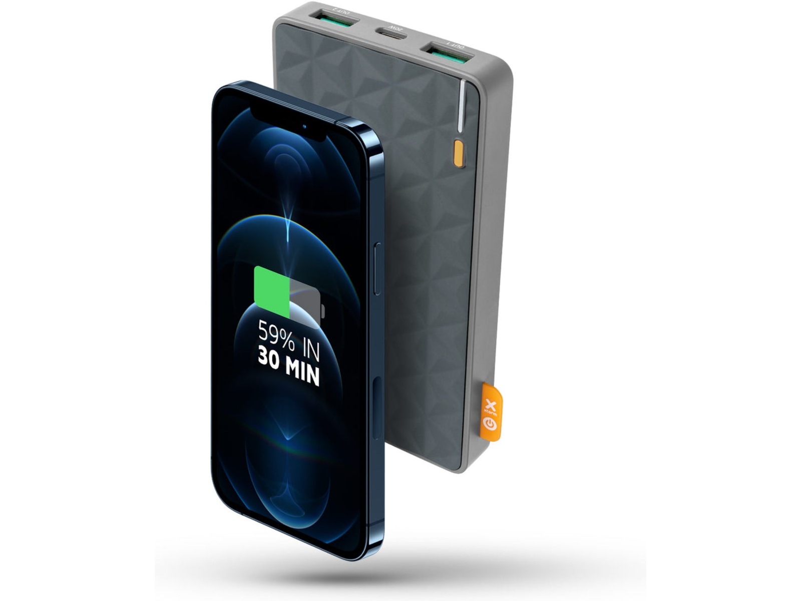 Denne Power Bank i Fuel Series kan lade en splitter ny iPhone 14 og iPhone 12/13 opptil 59 % på bare en halv time. Sammenlignet med å bruke en gammel ladekloss er denne opptil 3 ganger raskere!