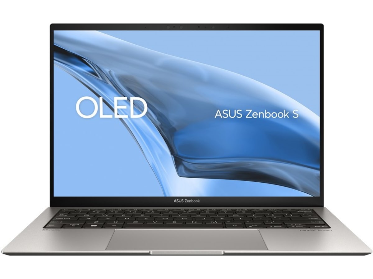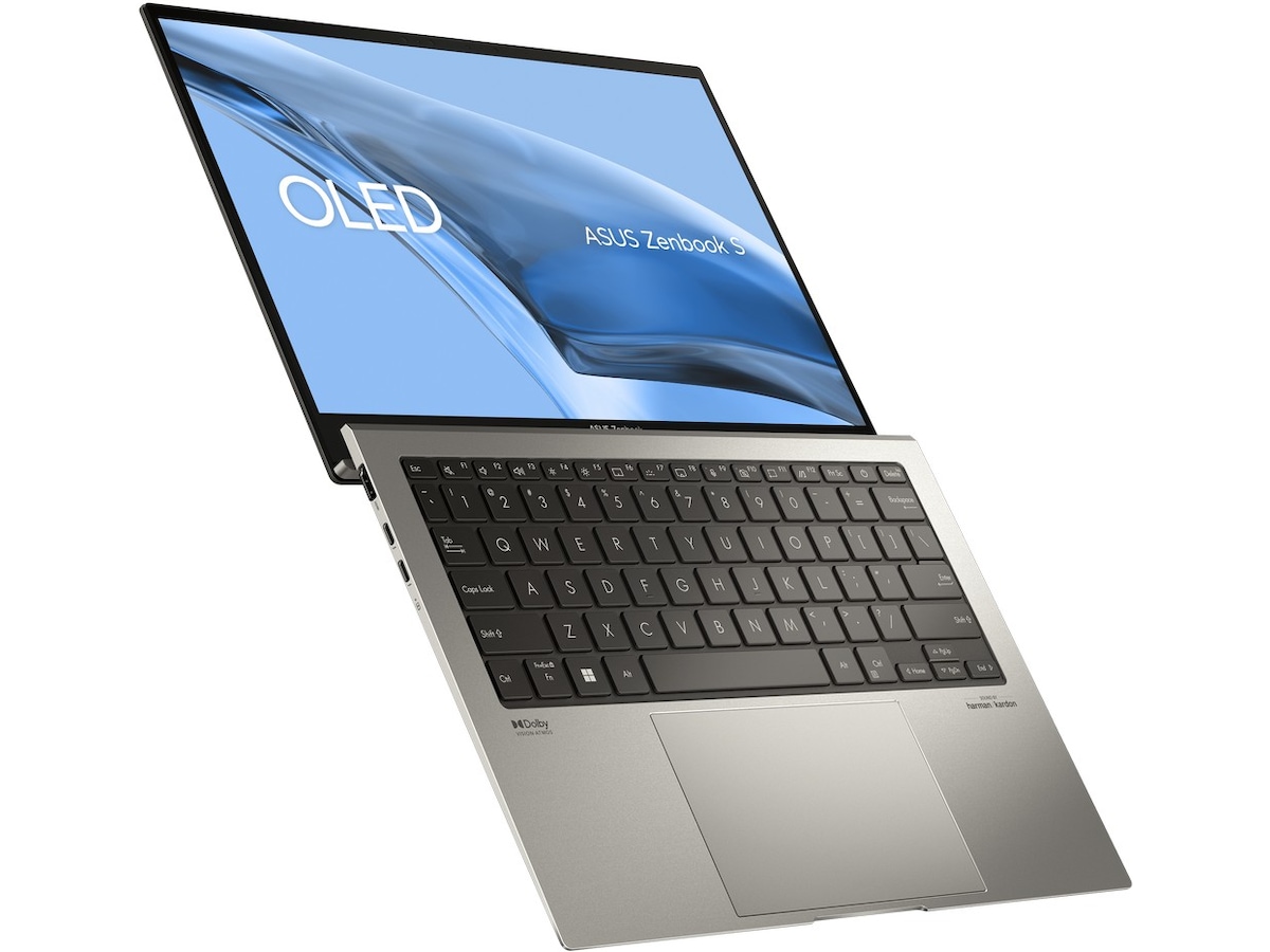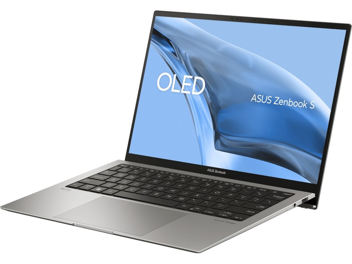 Zenbook S 13 OLED drives av 13. generasjons Intel Core i7-prosessor med Xe-grafikk, 32 GB RAM, 1 TB lynrask SSD og en 13,3" 2,8K Lumina OLED HDR NanoEdge-skjerm med 16:10 bildeforhold.