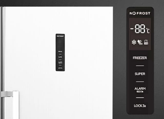Med det brukervennlige panelet kan du justere temperaturen, mens forhåndsinnstilte moduser som superkjøling og feriemodus gir ekstra komfort for rask nedkjøling eller energieffektivitet.