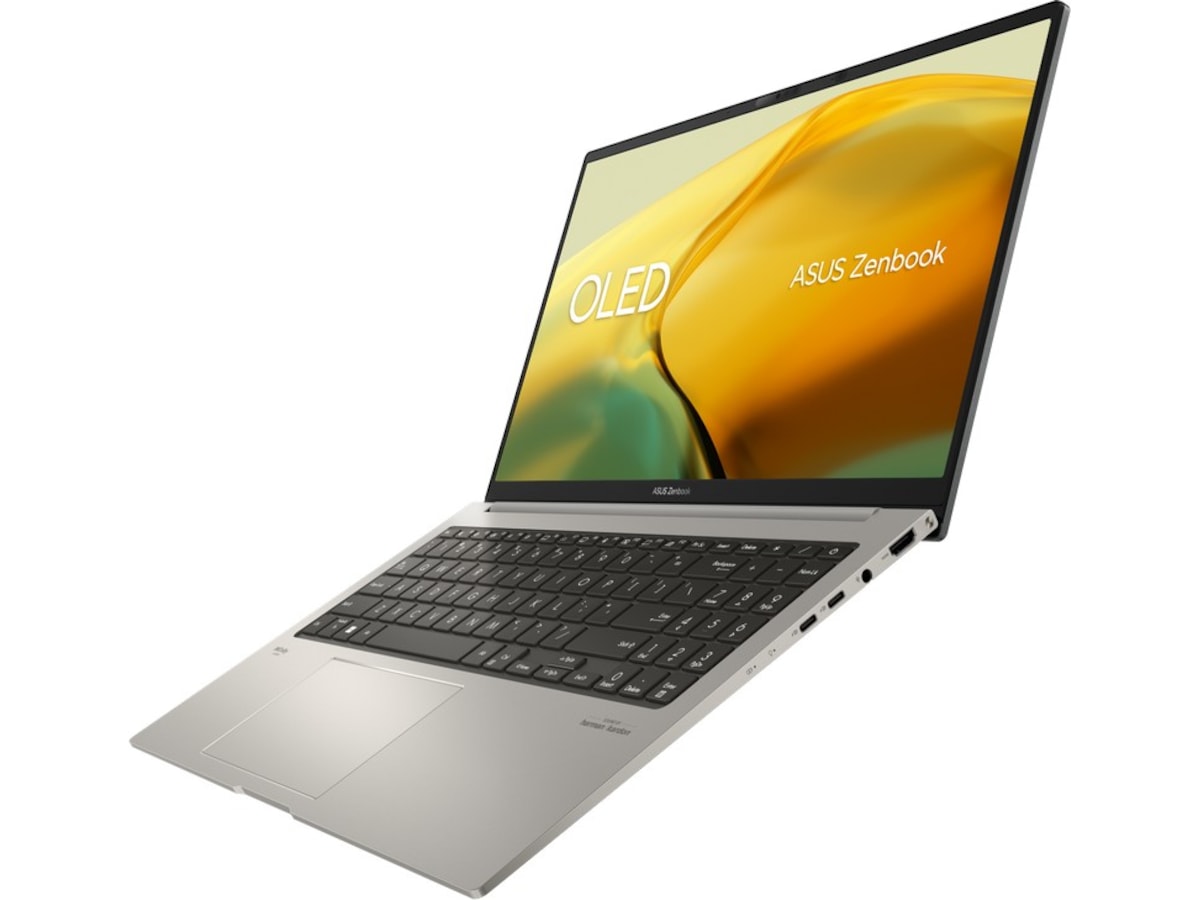 Zenbook 15 OLED er kun 14,9 mm slank og er bemerkelsesverdig lett på bare 1,4 kg, likevel har den en ekspansiv 16:9 120 Hz 2.8K OLED NanoEdge Pantone Validated-skjerm med et praktisk 180 flatliggende hengsel. Enestående ytelse er sikret med opptil en AMD Ryzen 7000-seriens prosessorer med Radeon grafikk,