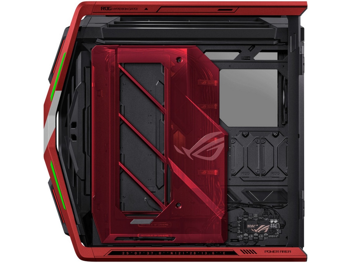 Republic of Gamers er befolket av byggere som krever det beste, og Hyperion GR701 har et kjølepotensial i toppsjiktet med støtte for 420 mm radiatorer på toppen og i fronten av kabinettet, mens fire 140 mm PWM-vifter er ferdig tilkoblet til en Aura Sync ARGB-viftehub