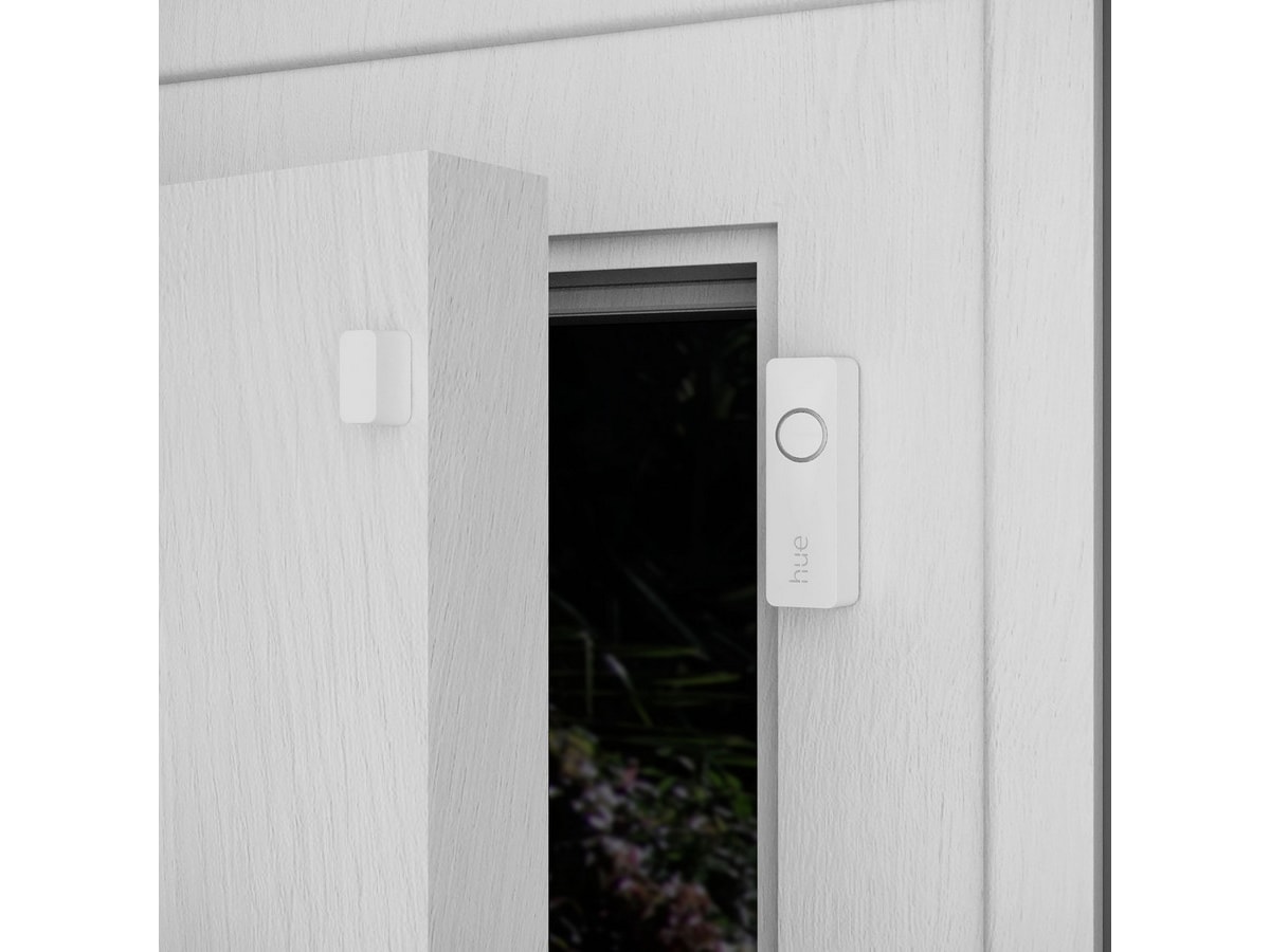 Få fullkommen sinnsro. Når de er tilkoblet, sender kontaktsensorene deg et varsel – og utløser til og med et lysvarsel – så snart noen åpner et vindu, en dør, et skap eller en safe. Philips Hue Bridge kreves