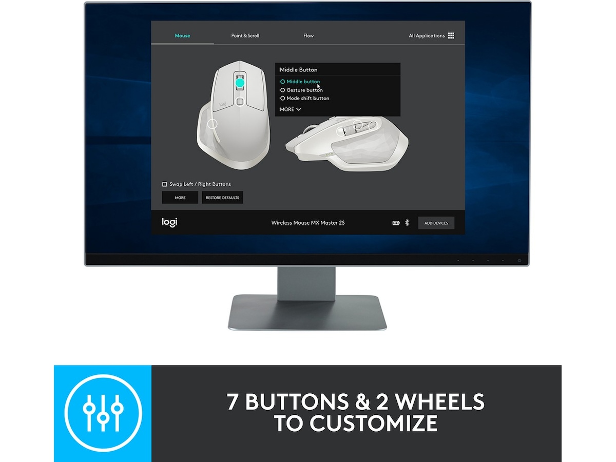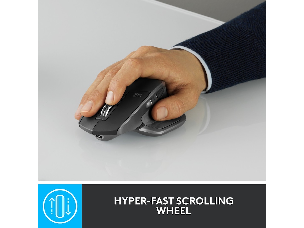 Den ultimate presisjonsmusen for avanserte brukere. Utnytt kraften til Logitech Flow og fytt sømløst innhold mellom tre datamaskiner. Bla gjennom dokumenter og nettsider raskere og enklere med det hastighetstilpassede rullehjulet. Holder en hel dag med bare tre minutters lading. En skulpturert, håndlaget form gir komfortabel støtte for hånd og håndledd.