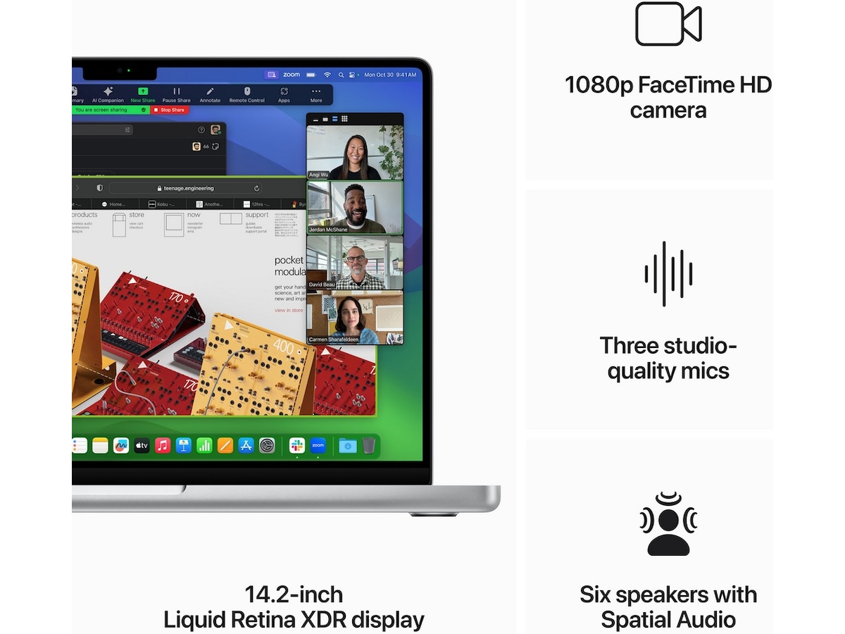 - AVANSERT KAMERA OG LYD – Vis deg fra din beste side med et 1080p FaceTime HD-kamera, tre mikrofoner i studiokvalitet og seks høyttalere med romtilpasset lyd.
